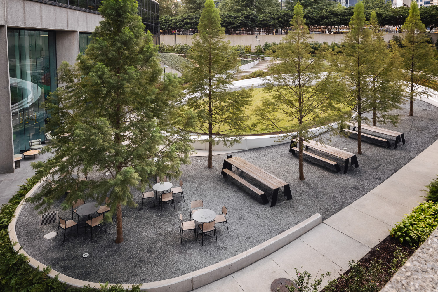AFC Park is a thoughtfully designed outdoor amenity that brings fresh air and green space into the workday. Designed for casual collaboration, relaxation, and campus gatherings, the park enhances the tenant experience while reinforcing AFC’s commitment to balance and well-being.